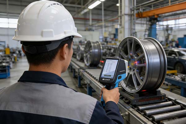 而對于蕞終成品,手持式光譜儀的檢測則是交付前的蕞后一道,也是直接的安全防線。它能夠對完全加工好的輪轂進行百分之百的無損全檢。只需將儀器探頭輕觸輪轂表面,無論是輪輻、輪輞還是安裝面,其材料的真實“身份”便一覽無余。這不僅能確保產品完全符合設計標準,更能有效識別并攔截那些可能混入生產線的、牌號錯誤或有不明摻雜的輪轂,防止任何“不合規”的產品流入市場,安裝到飛馳的汽車之上。