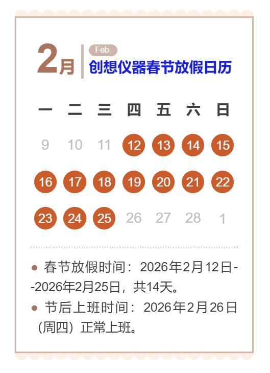 2026年無錫創(chuàng)想分析儀器有限公司春節(jié)放假通知: