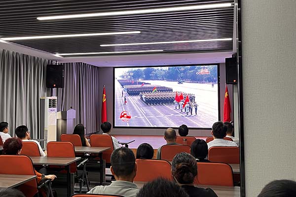 上午9時,閱兵式正式開始。當(dāng)嘹亮的國歌聲響起,全體員工自發(fā)起立,齊聲高唱,莊嚴(yán)的氛圍感染著現(xiàn)場每一個人。分列式上,中國人民解放軍將士們步伐鏗鏘、意氣風(fēng)發(fā);新型武器裝備依次亮相,展現(xiàn)出現(xiàn)代化國防力量的強(qiáng)大實(shí)力;一個個震撼人心的畫面,讓在場員工心潮澎湃,民族自豪感油然而生。閱兵儀式令人心潮澎湃,不僅增強(qiáng)了民族自豪感,也更深刻體會到和平的珍貴與奮斗的意義。